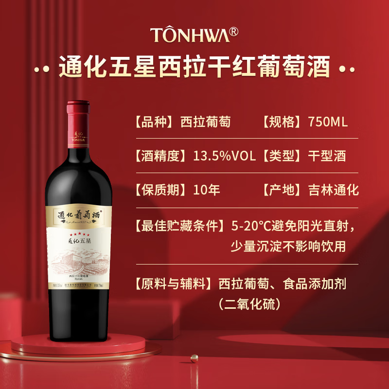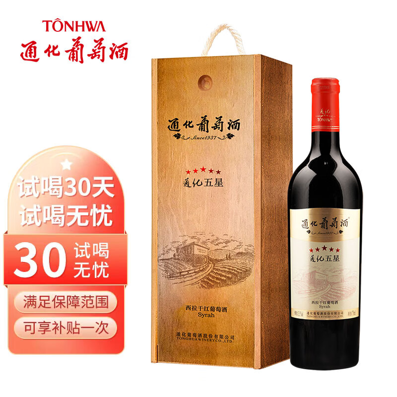 通化 1937 (TONHWA) 五星西拉干红葡萄酒 13.5%vol 晚安红酒 750ml 单支礼盒款 果酒价格:158.00元!