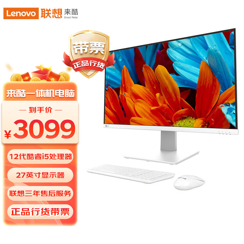 来酷Lecoo联想一体台式机电脑27英寸(12代酷睿i5-12450H 8G 512G SSD )白 无线键鼠价格:3099.00元!
