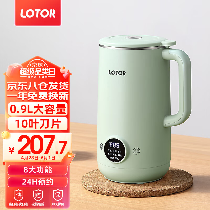 小浣熊豆浆机迷你破壁机五谷杂粮家用小型全自动静音免滤免洗米糊机榨汁机料理机婴儿辅食机3人4 1L绿色升级款价格:207.70元!