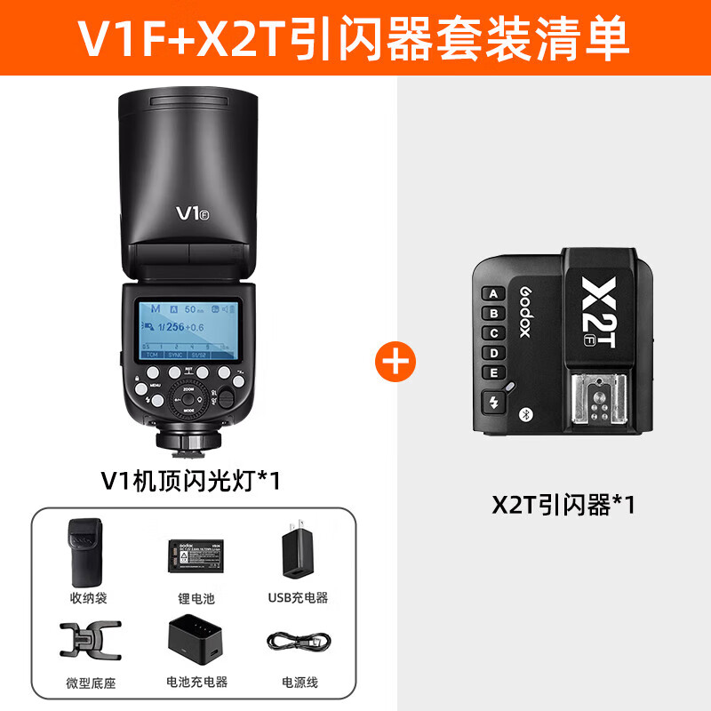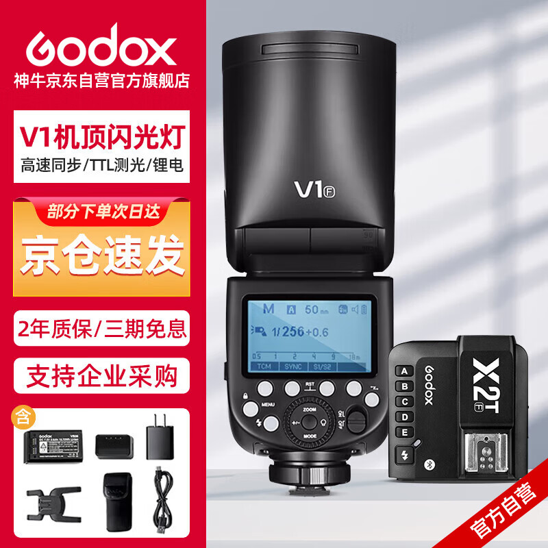 神牛V1机顶闪光灯单反相机外拍摄影补光灯户外人像高速同步TTL热靴闪光灯【V1+X2T引闪器】 尼康版价格:1668.00元!