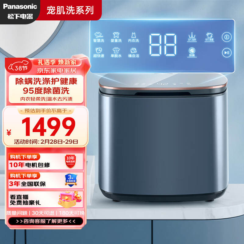 松下(Panasonic)mini洗衣机1kg 内衣内裤健康除菌洗 衣物袜子除菌螨 幼童母婴洗衣机 宠肌洗系列 XQB10-A10L贴心蓝价格:1499.00元!