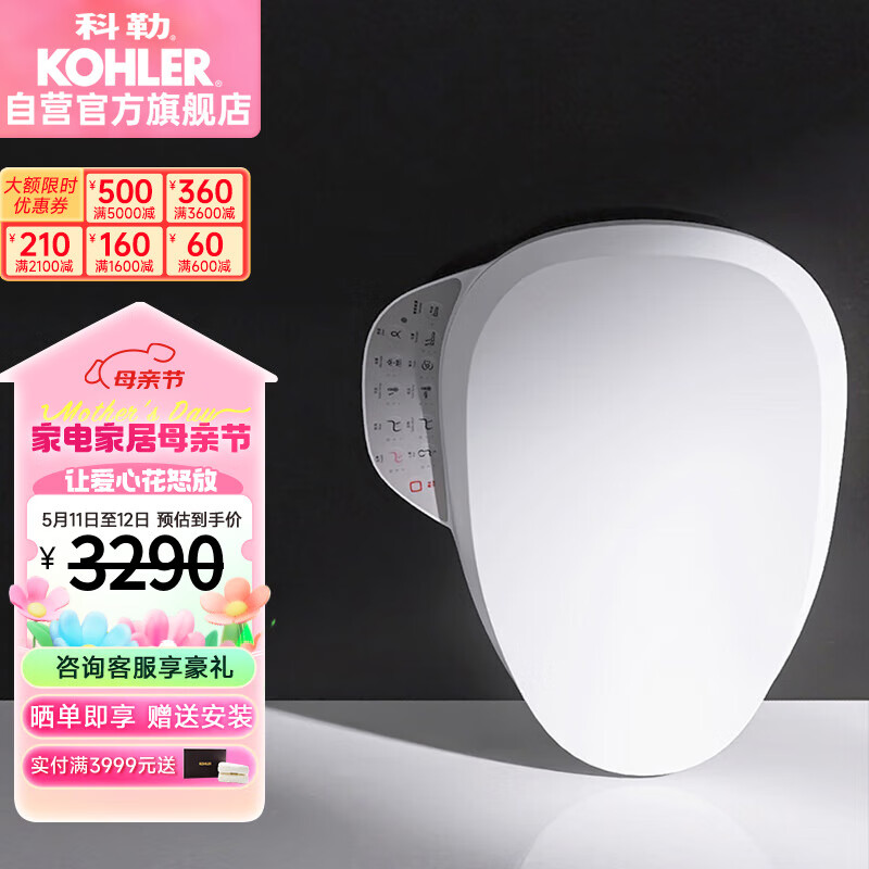 科勒(KOHLER)智能马桶盖坐便盖板清舒宝洁身器即热式K-31332T-0价格:4117.00元!