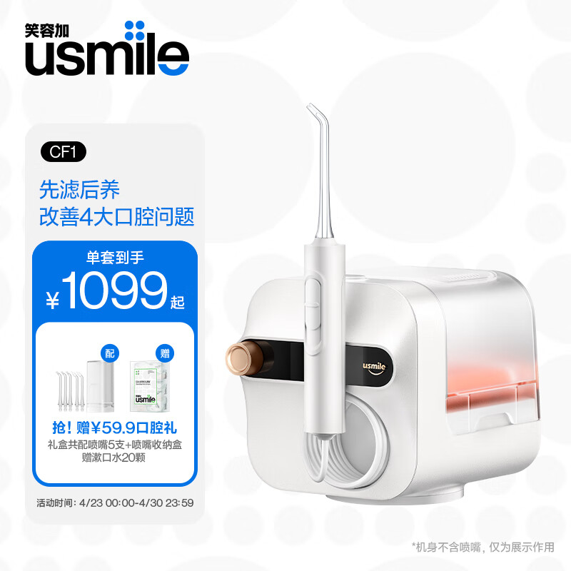 usmile笑容加冲牙器 洗牙器 水牙线 洁牙器 洁牙机 家用台式冲牙器 CF1冲牙器 皓月白价格:1259.00元!