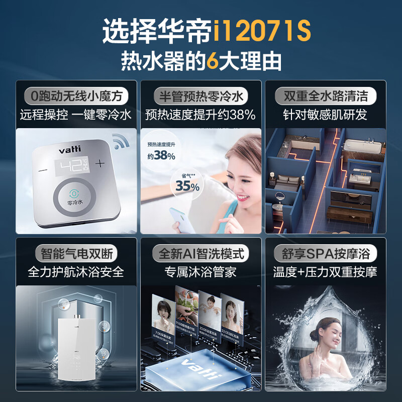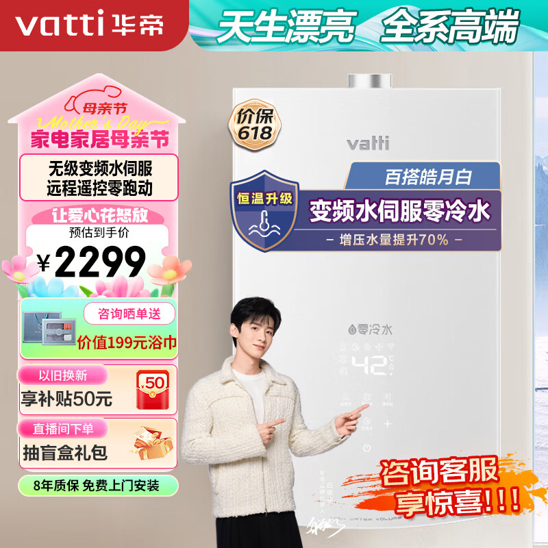 华帝(VATTI)16升燃气热水器天然气家用白色远程遥控零冷水变频水伺服玻璃屏全水路杀菌气电双断 i12071S-16价格:2299.00元!