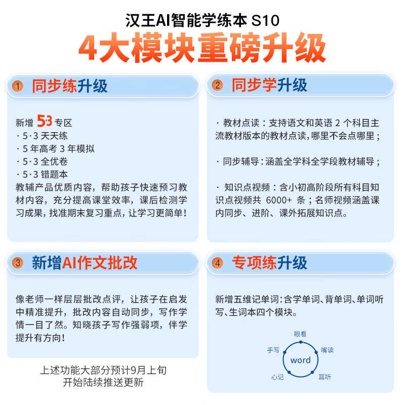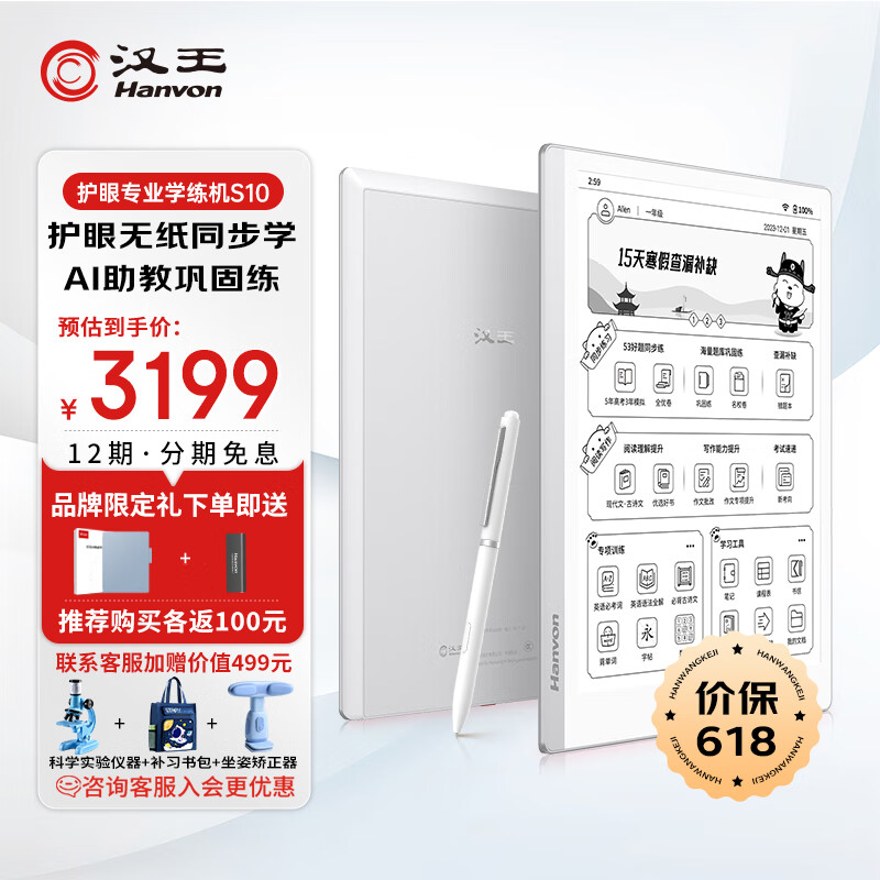 汉王S10 智能练习本电纸书10.3英寸护眼墨水屏学生平板学练机教材同步AI错题本学习机小学高中家教机价格:3199.00元!