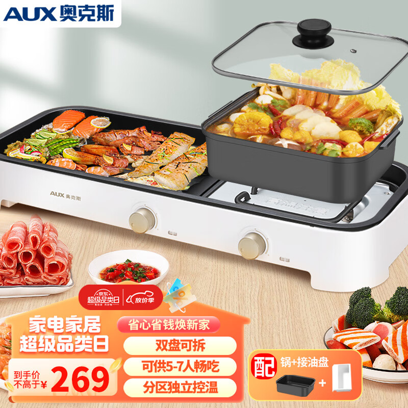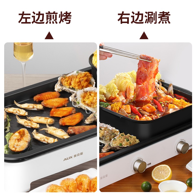 奥克斯(AUX)电烧烤炉 多用途锅 无烟烤肉锅 电烤炉家用 涮烤一体两用锅 LA-KS119价格:269.00元!