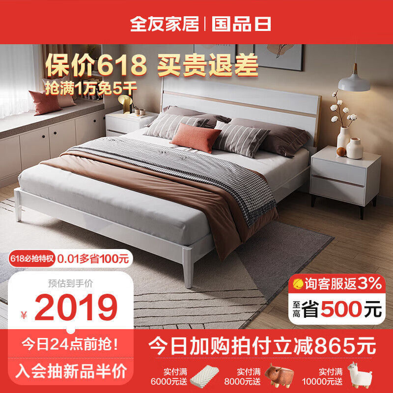 全友家居 床现代简约双人床双色拼接床屏板式床卧室家具126101B价格:2884.29元!