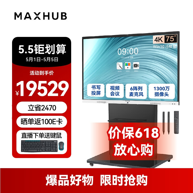maxhub视频会议平板一体机教学智慧屏摄像头麦克风触摸屏白板新锐Pro75 Win10+商务支架+遥控器价格:19529.00元!