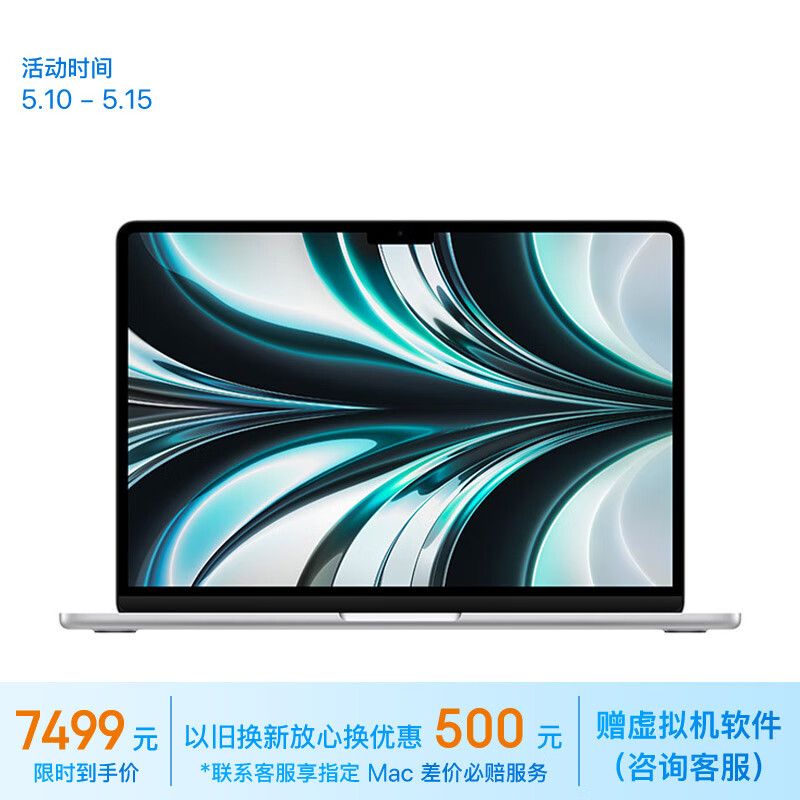 Apple/苹果AI笔记本/2022MacBookAir13.6英寸M2(8+8核)8G256G银色电脑MLXY3CH/A价格:7999.00元!