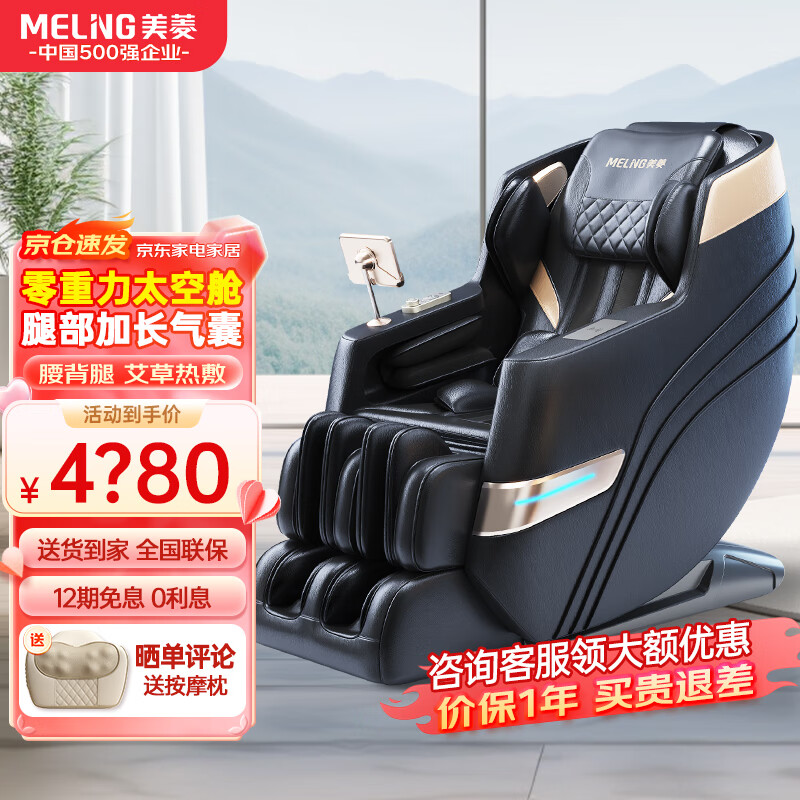 美菱 MELNG按摩椅家用太空舱全身按摩小巧沙发多功能全自动电动按摩椅子生日送礼长辈礼物头等舱YS06黑色 价格:4980.00元!