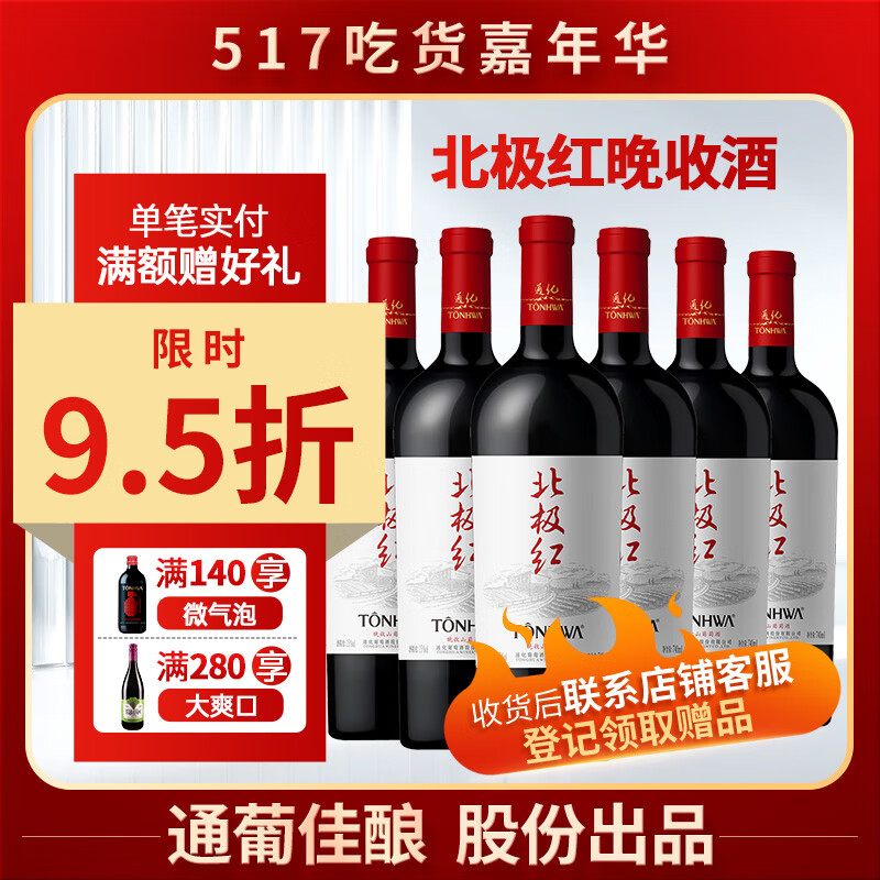 通化 1937北极红 晚收甜红葡萄酒15%vol 晚安红酒 740ml*6 整箱装 果酒价格:550.00元!
