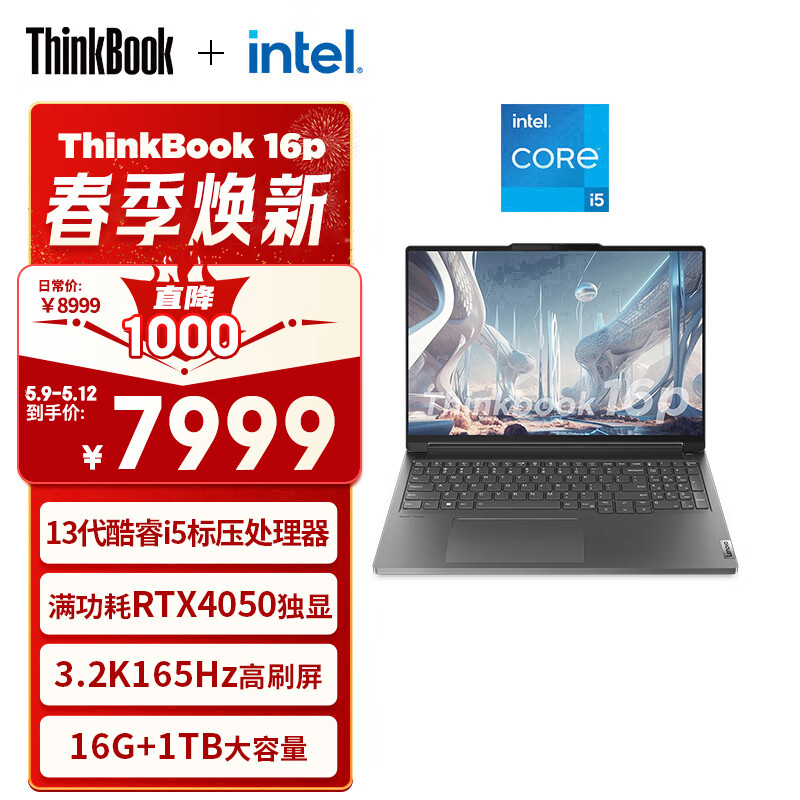 ThinkPad联想ThinkBook 16p 英特尔酷睿i5 16英寸高性能轻薄游戏创作本13代i5-13500H 16G 1T RTX4050 3.2K 165Hz价格:7999.00元!