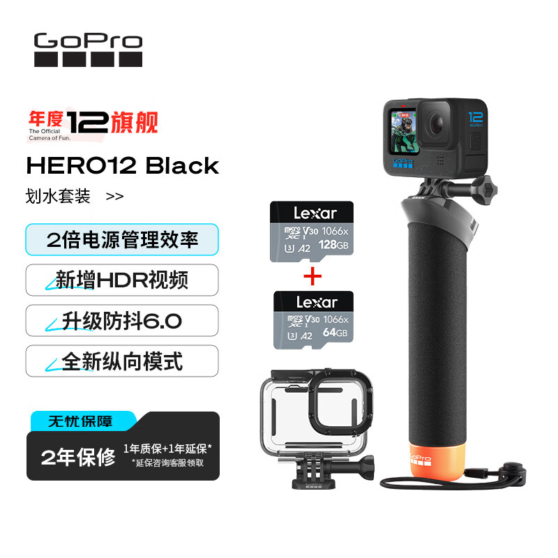 GoProH12 运动相机 户外摩托骑行防抖 水下潜水防水 滑雪照相机 划水套装加128G存储卡套组价格:3583.00元!