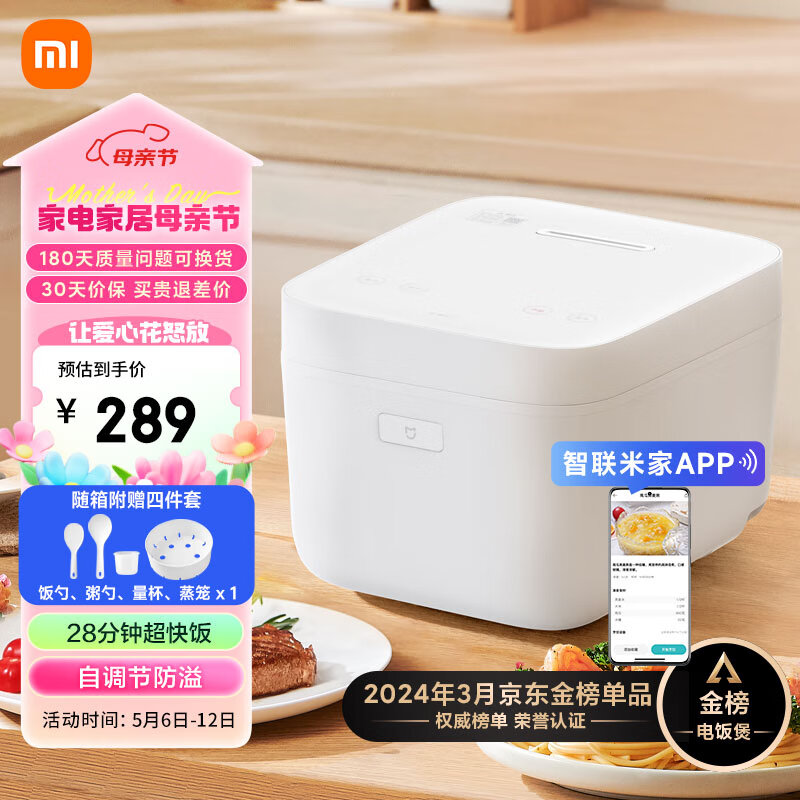 米家小米电饭煲家用3-4个人/5-10人 多功能电饭锅煮饭锅煮粥锅 烈焰灶釜内胆不粘锅智能防溢 大容量5升价格:289.00元!