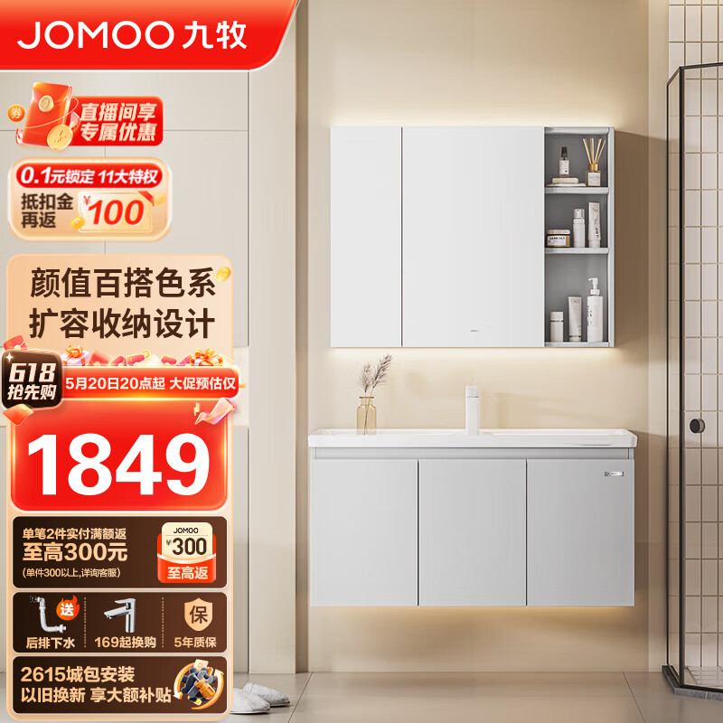 九牧(JOMOO)极简浴室柜陶瓷一体盆悬挂式洗脸洗手组合柜100cm A2721-17LD-1价格:2299.00元!