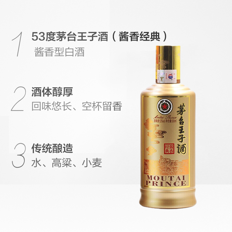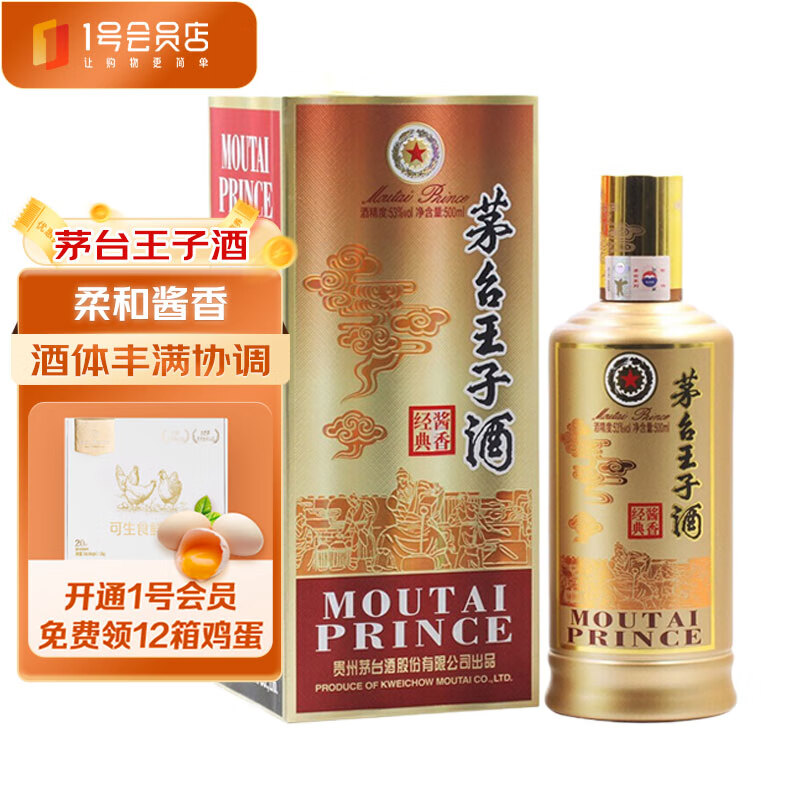 茅台 王子酒(酱香经典)酱香型白酒53度500ml 单瓶装1号会员店价格:278.00元!
