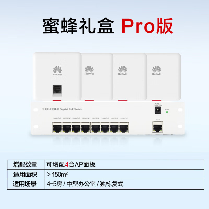 华为全屋wifi6蜜蜂套装Pro 4个86面板AP+8口Poe交换机 分布式无线AP千兆双频5G路由器 网络无缝漫游价格:2699.00元!