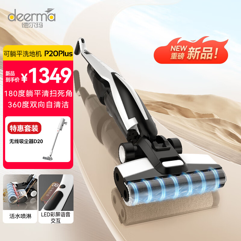 德尔玛(Deerma)P20Plus套餐版 平躺智能洗地机 防缠绕沿边家用洗拖吸一体机电动拖把手持吸尘器扫地机价格:1349.00元!