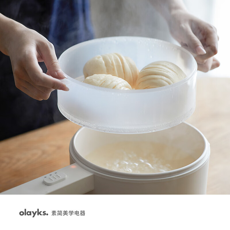 olayks电煮锅 小电锅 宿舍小锅 多功能电热锅 学生宿舍泡面电火锅陶瓷釉电炒锅多用途电蒸锅 1.5L配蒸笼价格:99.00元!