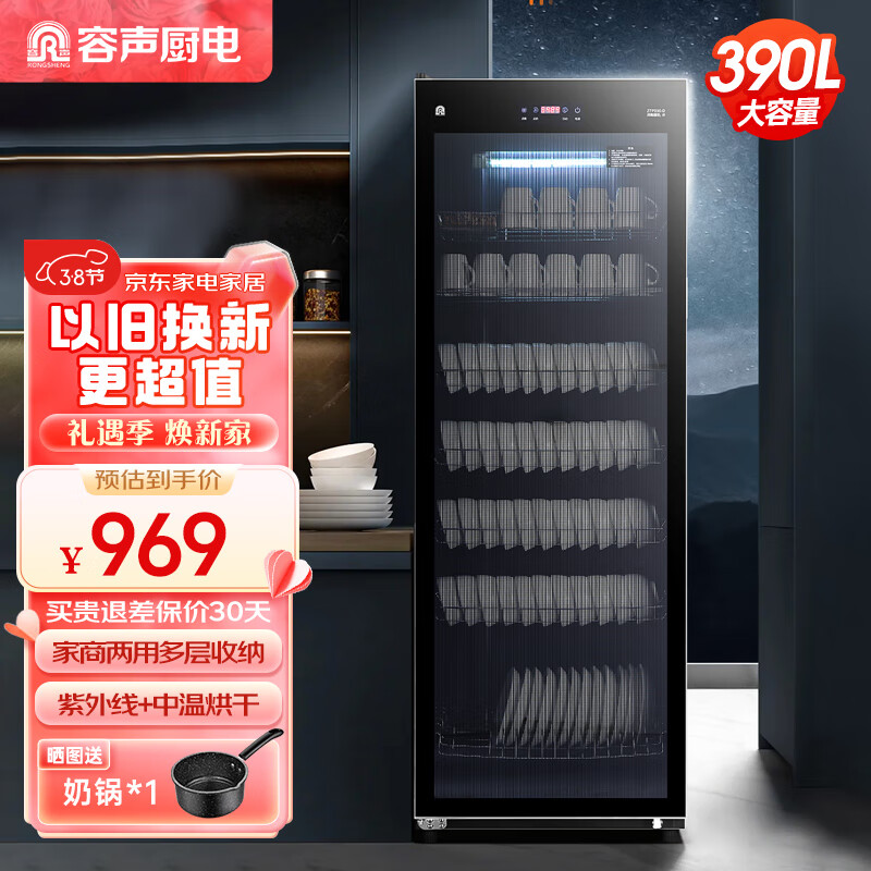 容声(RONGSHENG)消毒柜家用 立式消毒柜 消毒碗柜 双开门家商两用厨房商用大容量390L大容量390-RD305(S)价格:969.00元!