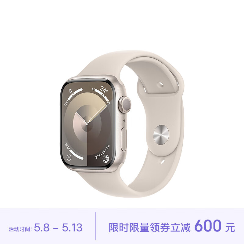 Apple/苹果 Watch Series 9 智能手表GPS款45毫米星光色铝金属表壳 星光色运动型表带M/L MR973CH/A价格:3199.00元!