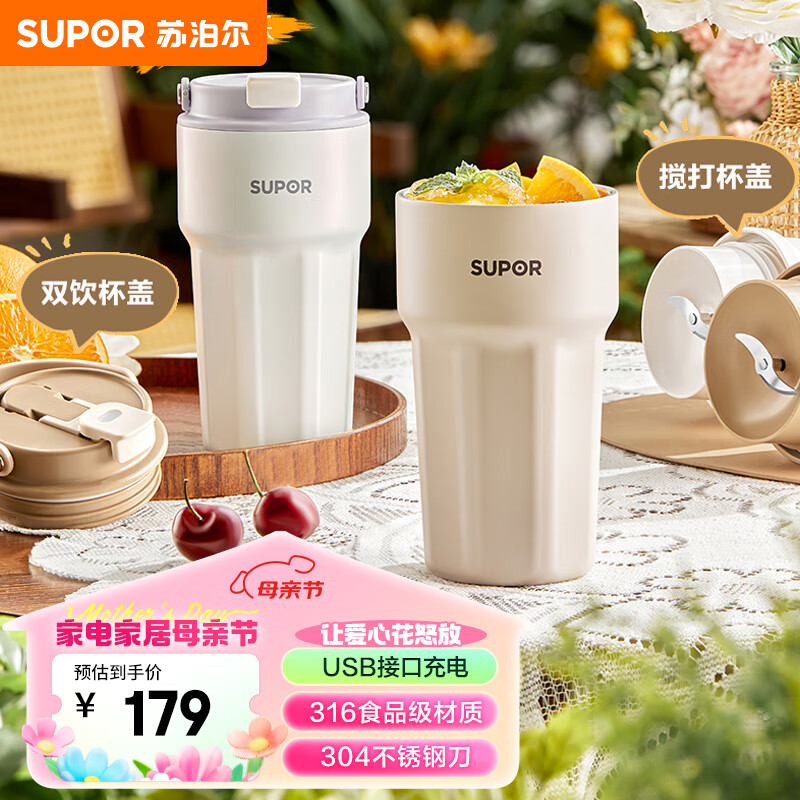 苏泊尔(SUPOR)双盖榨汁机 充电随行果汁机 易清洗便携水果炸榨汁机小型料理机搅拌机 婴儿辅食机 JC360价格:179.00元!