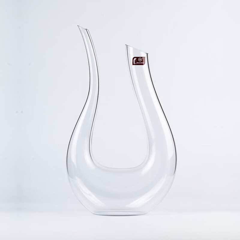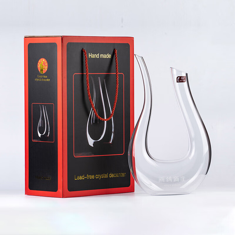 西鸽酒庄定制U型竖琴醒酒器1400ml 无铅水晶玻璃材质 赠品酒具价格:79.00元!