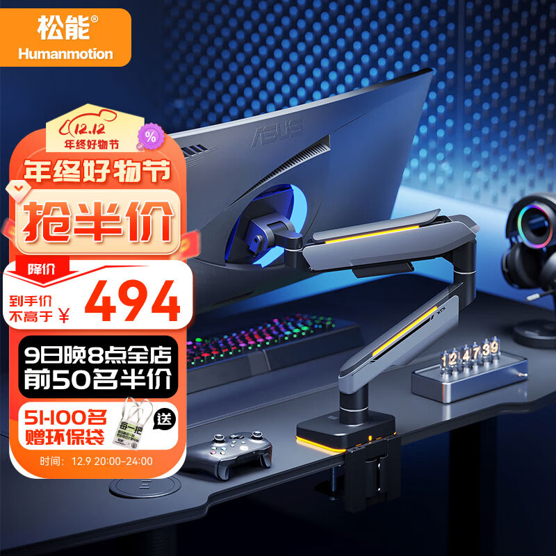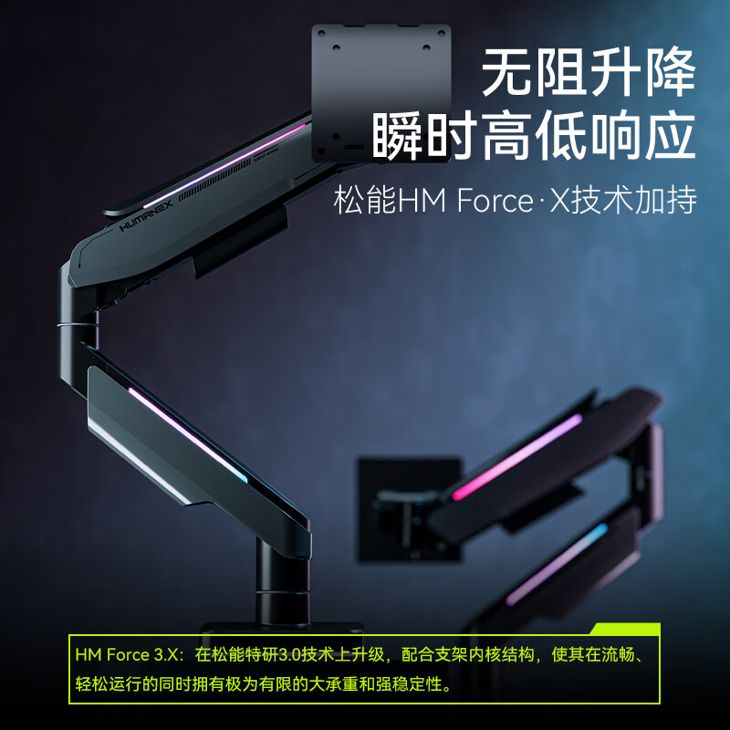 松能显示器支架 电脑支架 显示屏支架 显示器支架臂 显示器增高架 暗夜天使RGB电竞支架大承重18KG T18-1H价格:669.00元!