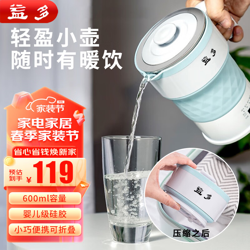 益多电热水壶 便携式折叠水壶电热烧水壶旅行迷你小型烧水壶宿舍家用自动断电 智能款ZJ-1价格:119.00元!