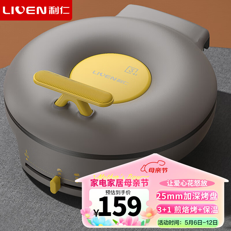 利仁(Liven)电饼铛家用加深烤盘双面加热电饼档 煎饼锅电烙饼锅三明治早餐机电煎锅 煎烙烤+保温LR-J2606价格:159.00元!