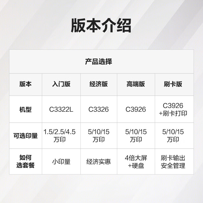 京东京东 佳能a3/a4彩色激光打印机复印机扫描一体机新机租赁按印付费10万印刷卡版配置参数: