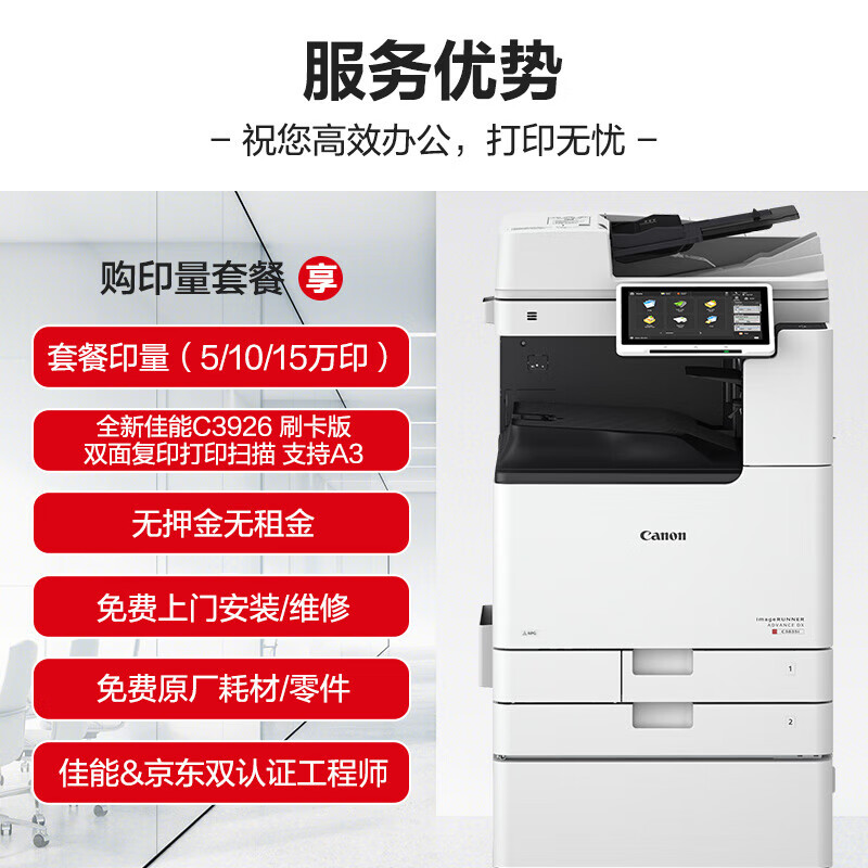 商品名称:京东京东佳能a3/a4彩色激光打印机复印机扫描一体机新机租赁按印付费10万印刷卡版