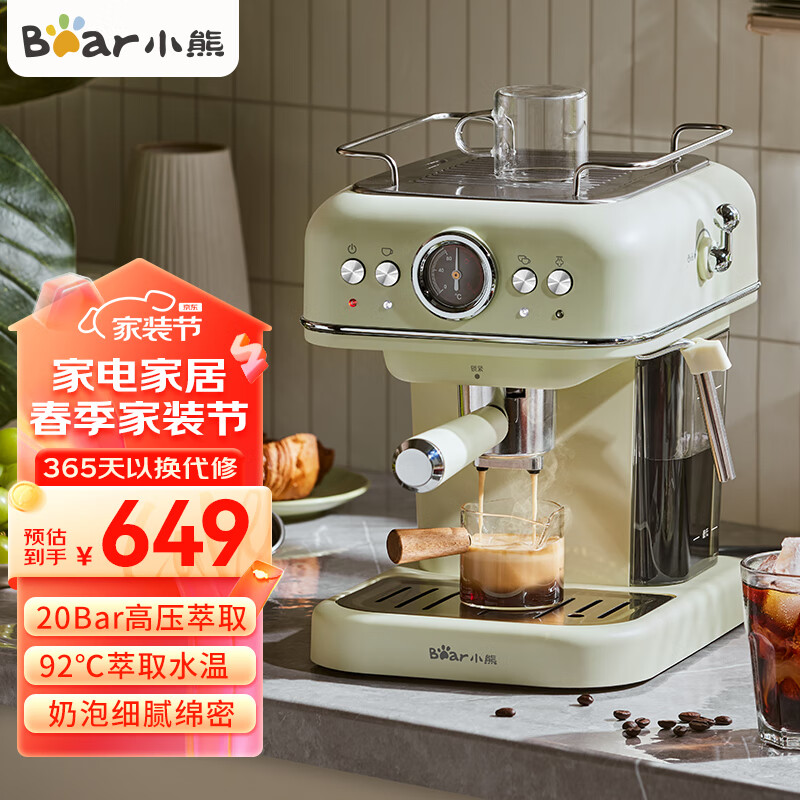 小熊(Bear)咖啡机家用意式泵压式20Bar高压喷射可打奶泡1.2升大容量 咖啡粉/咖啡胶囊/两用 酱香拿铁咖啡 【20Bar高压|意式咖啡机】价格:649.00元!