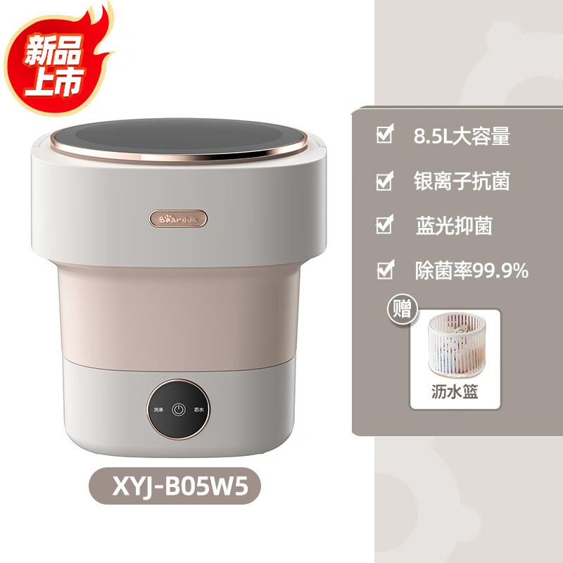 小熊(Bear)折叠洗衣机 迷你内衣婴儿内裤便携式袜子宝宝小型私物毛巾T恤自动洗衣机洗沥一体高效杀菌 【标准款】蓝光除菌+8.5升大容量价格:399.00元!
