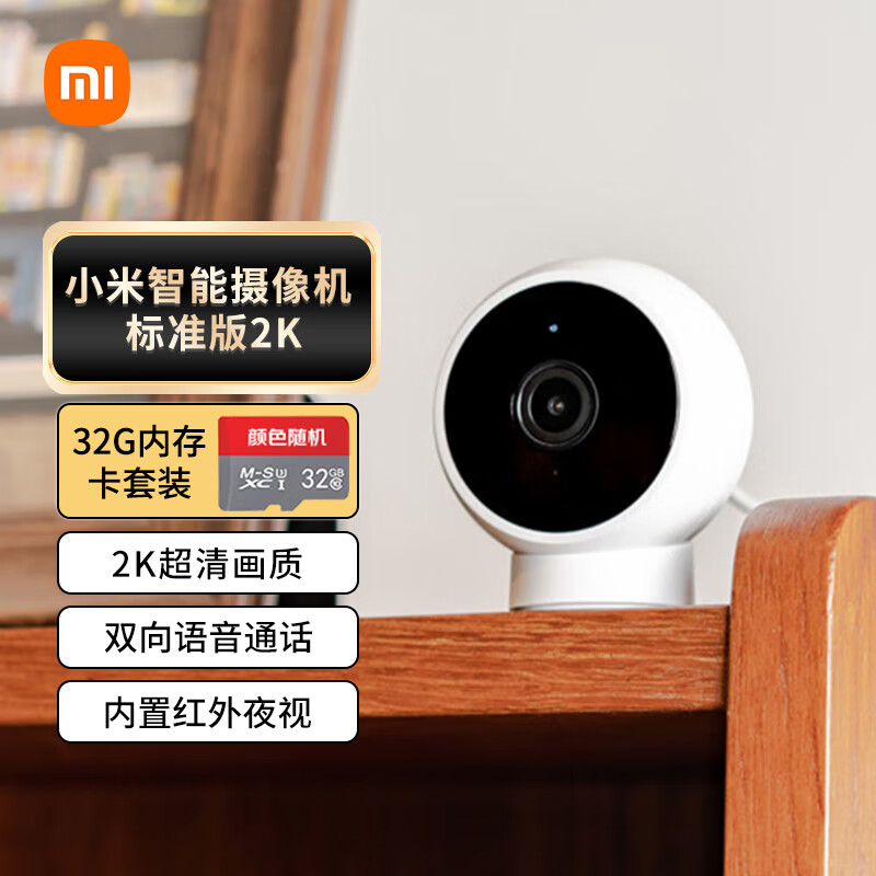 小米摄像头 标准版2K+32G内存卡套装 300万像素 家用监控器智能摄像机 手机查看 看家 AI人形侦测 磁吸底座价格:129.00元!