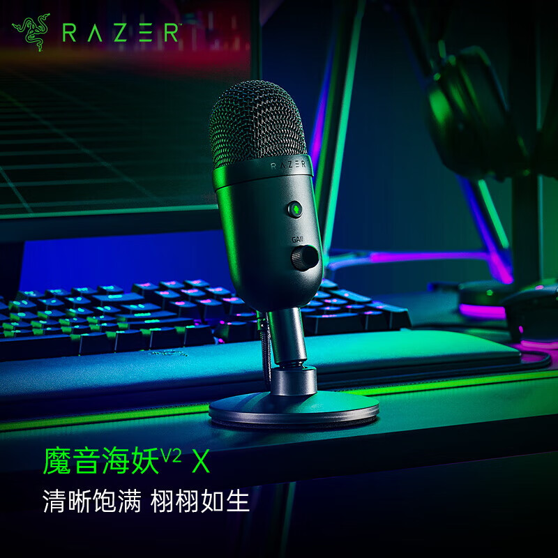 雷蛇 Razer 魔音海妖V2 X USB 电容式降噪麦克风 桌面电脑K歌 游戏直播 主播推荐 录音话筒价格:499.00元!