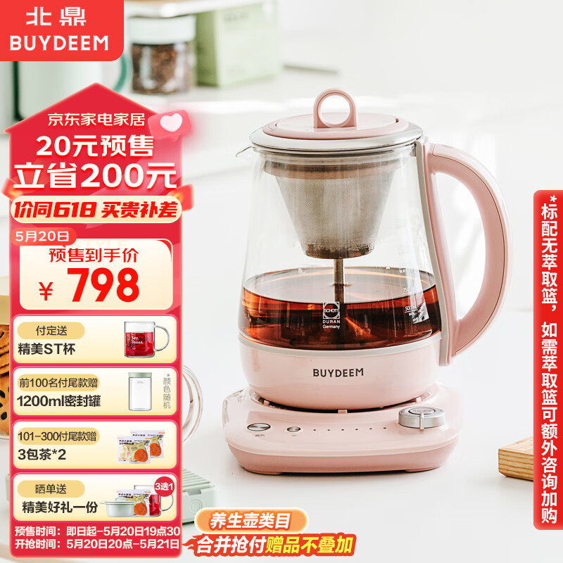 北鼎(Buydeem)智能养生壶烧水壶 家用电热水壶多功能煮茶器恒温热水壶智能APP互联 Smart K单壶猪猪粉价格:798.00元!