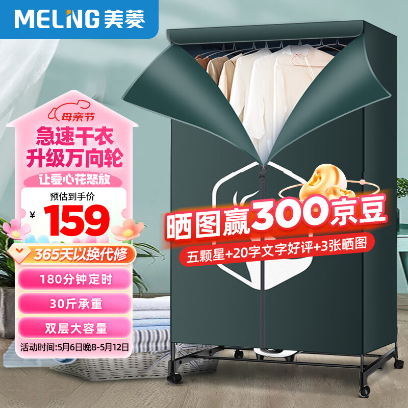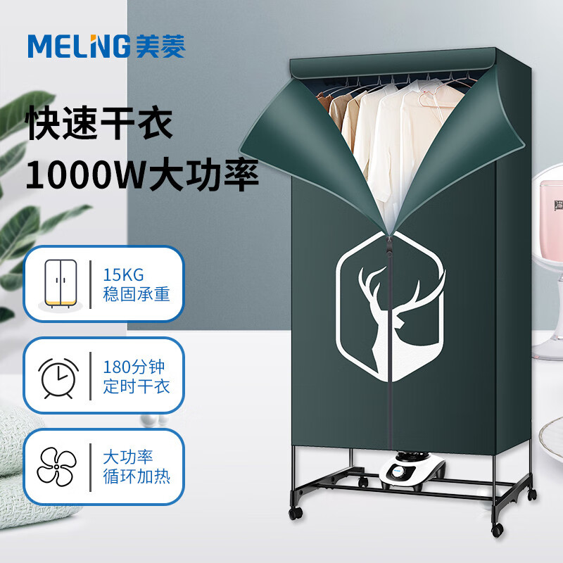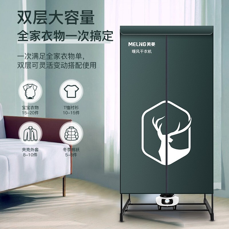 美菱(MeiLing)烘干机干衣机 家用婴儿衣物暖风干衣烘衣机15公斤大容量风干机 定时烘干双层机械式按键MD-16价格:199.00元!