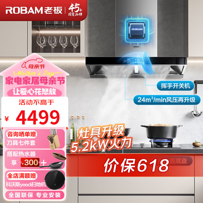 老板(Robam)油烟机60X6S变频双腔24立方风量1000Pa强劲静压【领航家MAX】挥手智控大吸力抽油烟机 搭配5.2kW天然气灶60X6S+57B0X 天然气价格:4499.00元!
