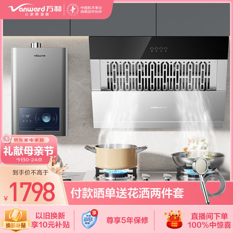 万和 Vanward 烟灶热三件套 侧吸大吸力油烟机燃气灶具热水器套装 J325S+B6B338XW+E2D12(天然气)价格:1798.00元!