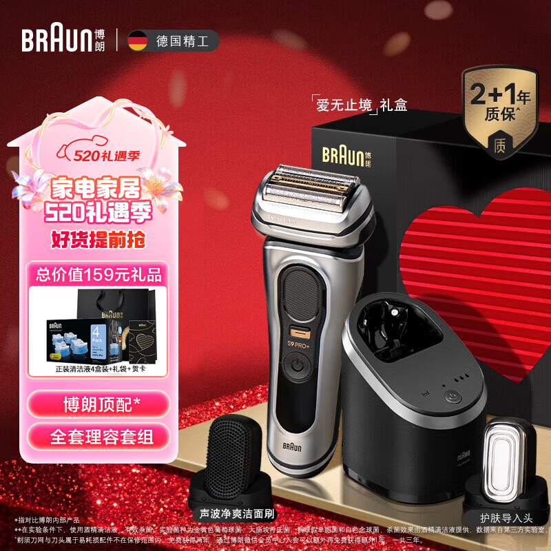 博朗(BRAUN)9系pro+升级版清洁中心多配件礼盒款电动剃须刀整机进口往复式送男友送老公价格:3399.00元!