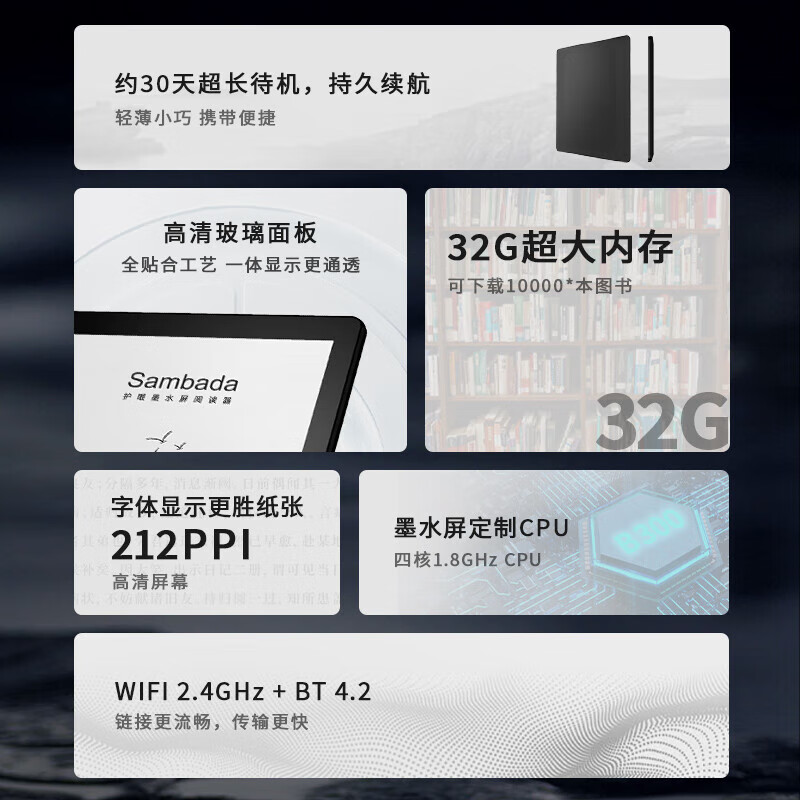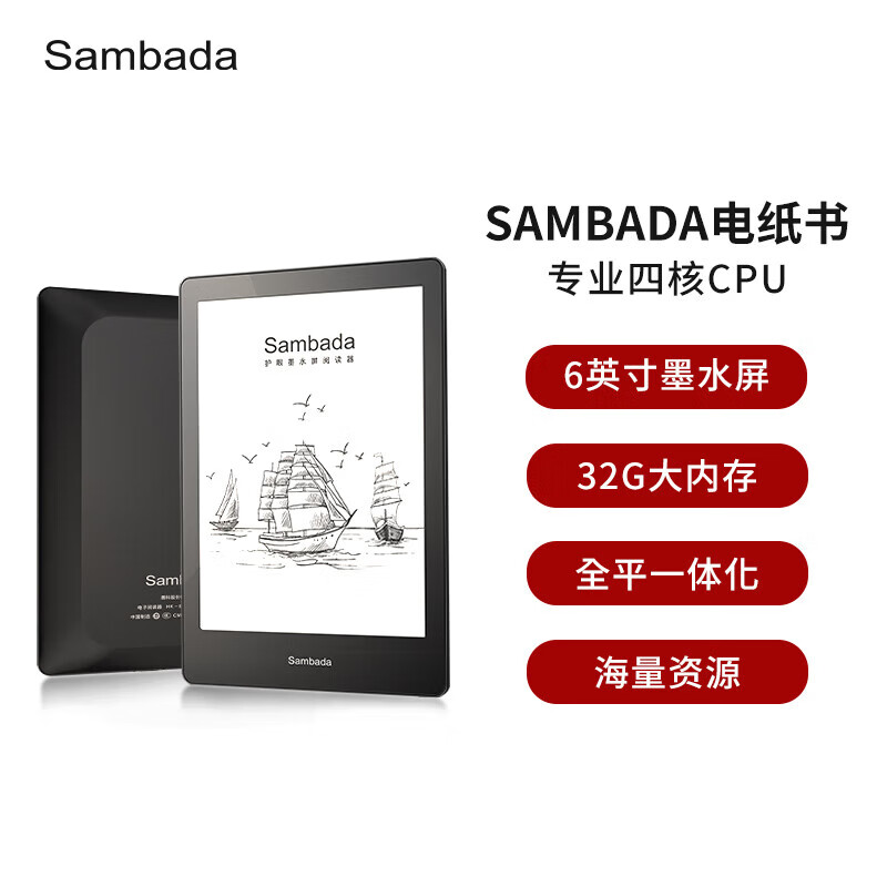 SAMBADA电纸书阅读器 6英寸电子书墨水屏 四核CPU 32GB大内存看书学习便携阅读本价格:519.00元!