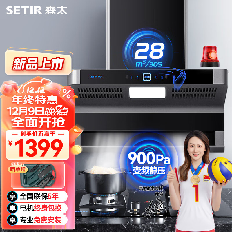 森太(SETIR)顶侧双吸油烟机 小户型智能变频大吸力家用自动清洗抽油烟机CXW-250-B812BQL价格:1599.00元!