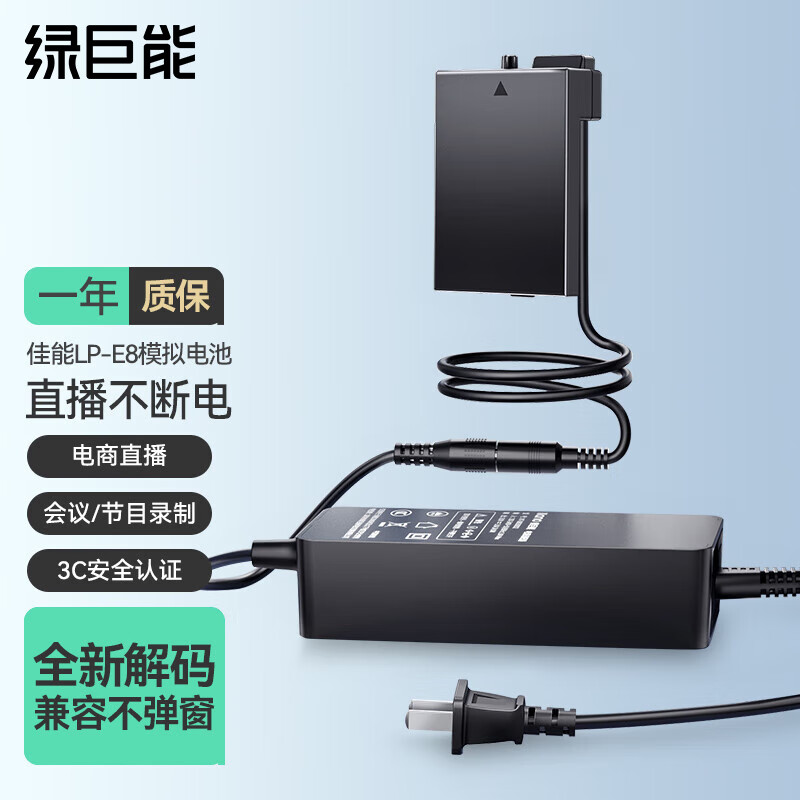 绿巨能(llano) 佳能LP-E8相机假电池700d模拟电池外接电源适配器600d 550d 650d X6i X5微单电池直播供电价格:119.00元!