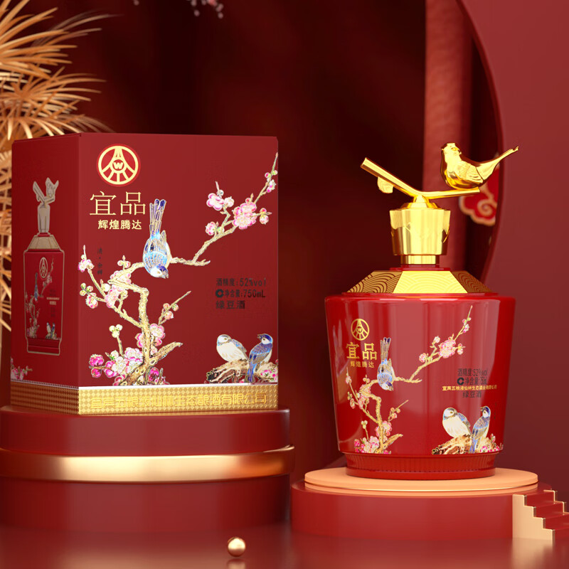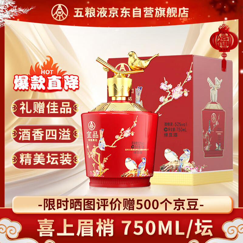 五粮液仙林生态 辉煌腾达 喜上眉梢绿豆酒52度750ml*1瓶龙年礼盒送礼价格:99.00元!