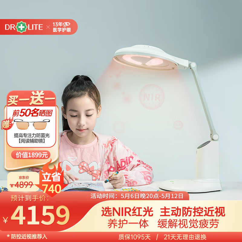爱德华医生护眼灯巴尔德尔之光医安级NIR红光智能调光学生阅读学习可夹台灯价格:4899.00元!
