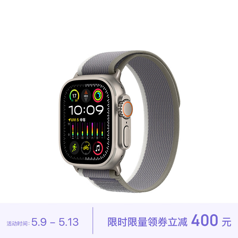 Apple/苹果 Watch Ultra2 智能手表GPS+蜂窝款49毫米钛金属表壳绿配灰色野径回环式表带M/L MRFP3CH/A价格:6399.00元!