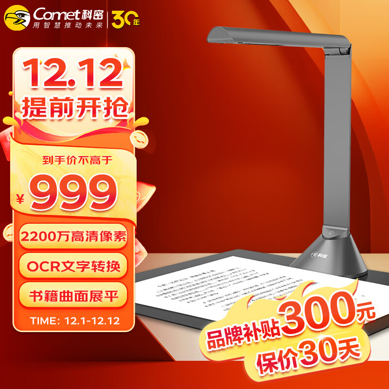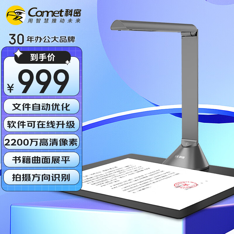 科密(comet) GP1600AF 高拍仪 2200万像素 可在线升级A3/A4扫描仪 OCR识别 办公招标资料拍摄 书籍曲面展平价格:1299.00元!