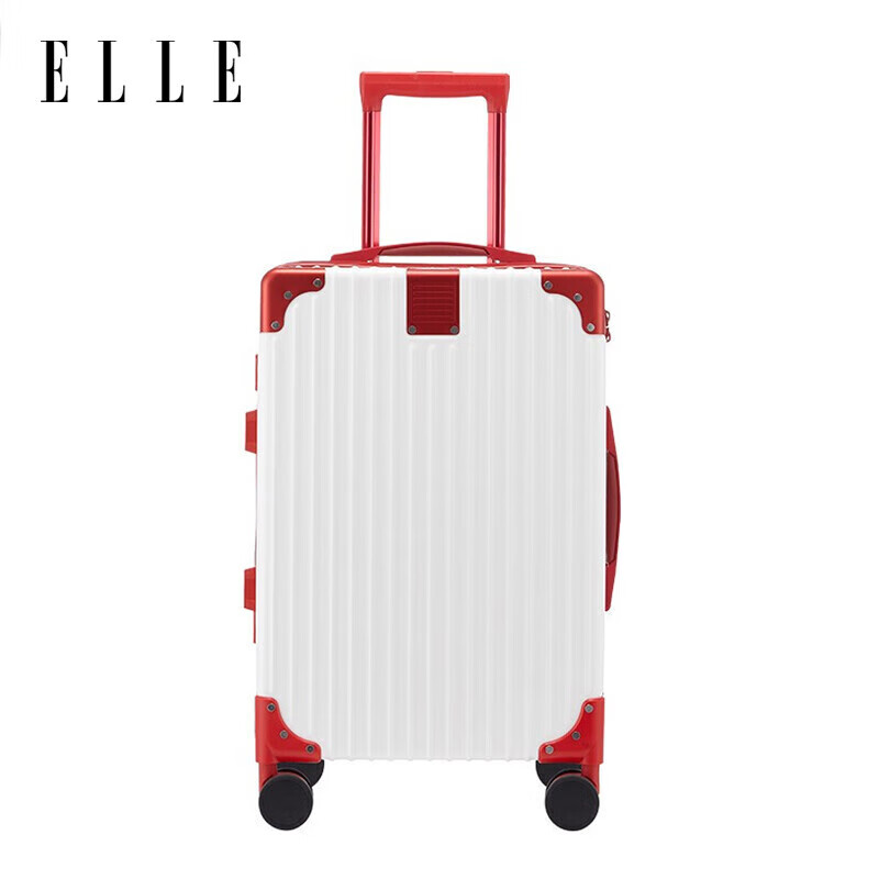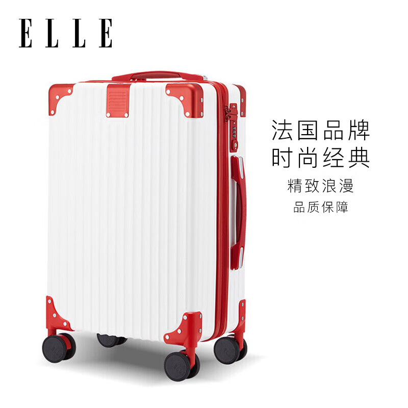 ELLE法国20英寸白色行李箱拉杆箱可登机拉链旅行箱万向轮时尚密码箱价格:329.00元!