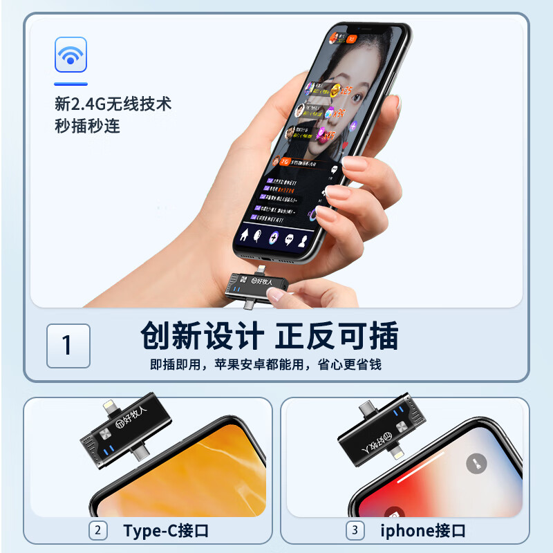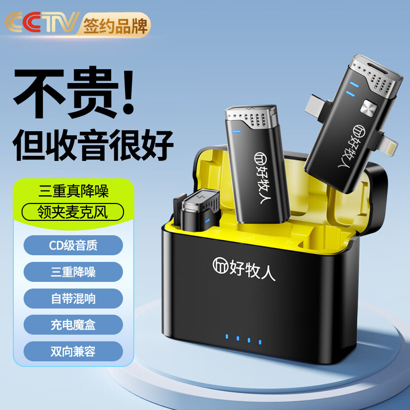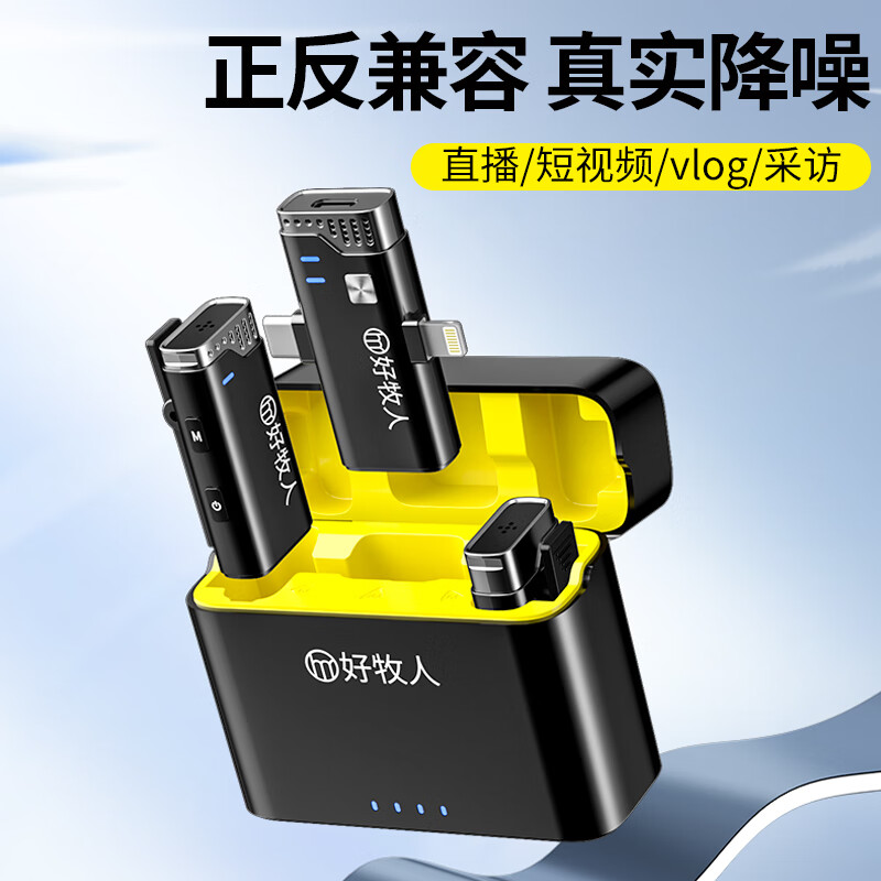 好牧人无线领夹式麦克风小蜜蜂一拖二收音话筒户外降噪抖音主播拍视频声卡直播设备录配音电脑手机相机价格:199.00元!